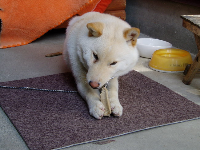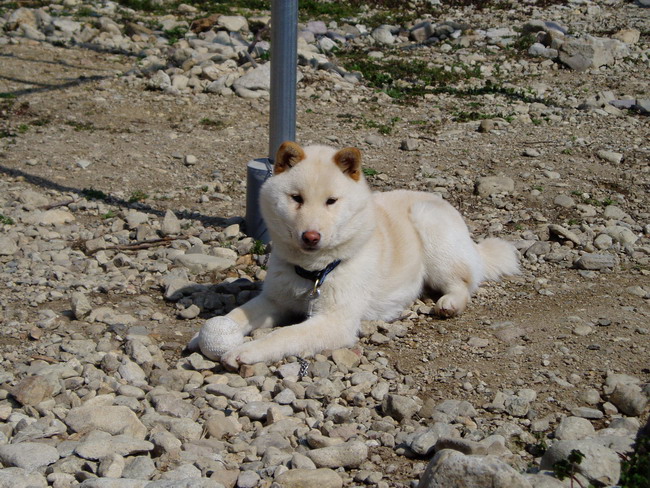 返事が遅くなりましたが 血統書いただきましたありがとうございました。 犬(名前はケン)も大変元気で毎日散歩に連れて いいえ連れられていってます。 今日は天気も良かったので写真を撮りましたでお送りいたします。 |